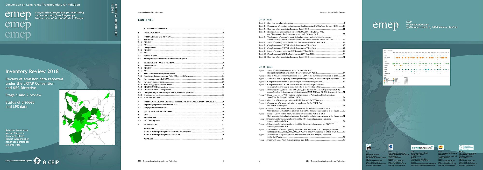 Inventory Review 2018 (Technical Report CEIP 4/2018, CEIP/EEA) and Annexes – status of reporting under the LRTAP Convention as of 1st June 2018 .